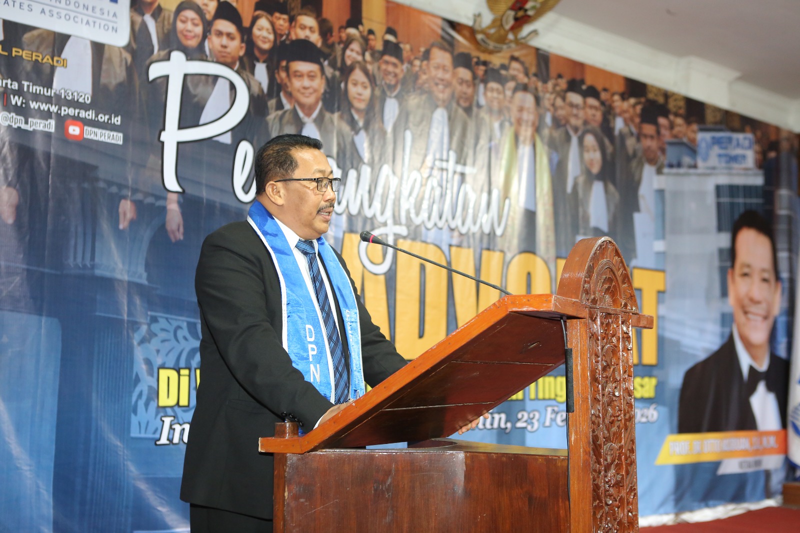 Dalam sambutannya, perwakilan DPN PERADI menegaskan bahwa pengangkatan advokat bukan sekadar formalitas administratif, melainkan momentum awal tanggung jawab profesi untuk menjunjung tinggi integritas, independensi, dan kode etik advokat dalam menjalankan tugas penegakan hukum.