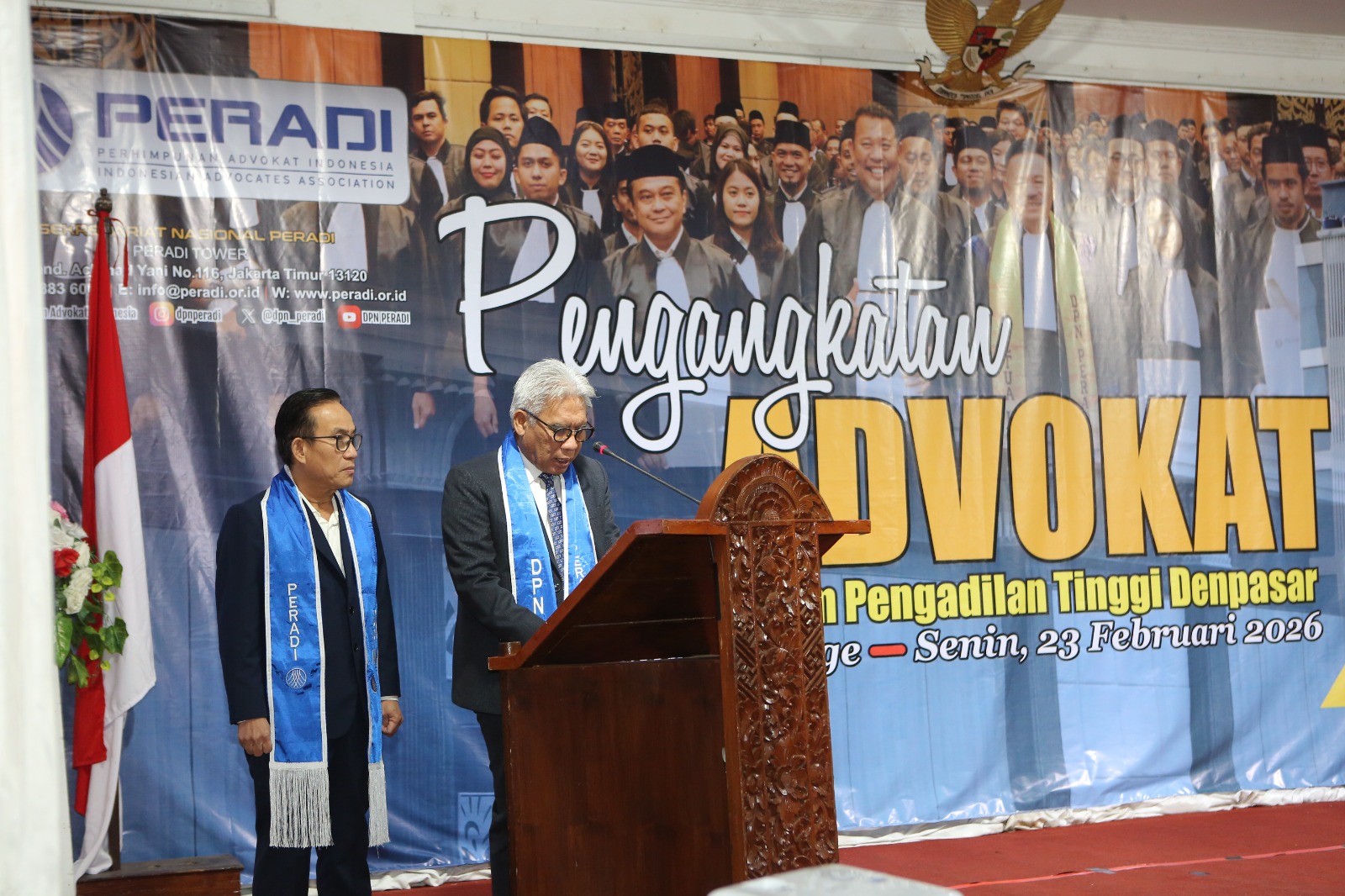 Sebanyak 169 calon advokat resmi mengikuti seremoni Pengangkatan Advokat PERADI Wilayah Pengadilan Tinggi Denpasar yang diselenggarakan pada Senin, 23 Februari 2026, bertempat di Inna Bali Heritage Hotel.
